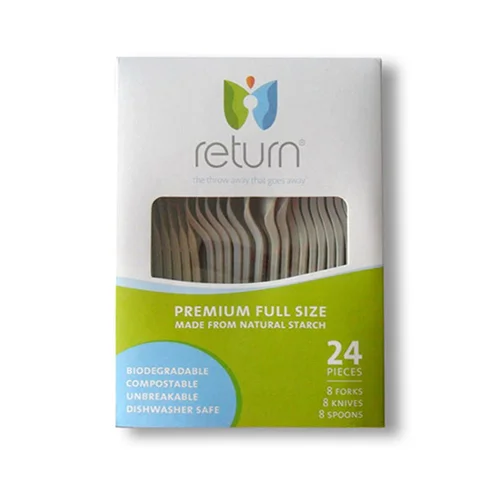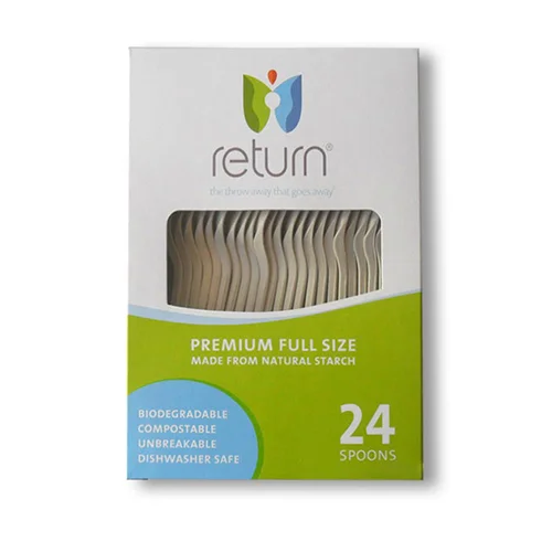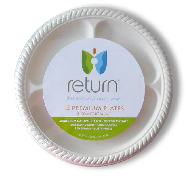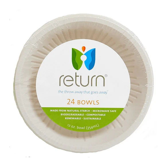 RETURN® natural starch disposable products are perfect eco-friendly alternatives to plastics. They are microwave safe, durable for use with hot foods, sauces and oils and can be used for indoor and outdoor entertaining. Made with a new innovative technology, Return® products are biodegradable, compostable, renewable and sustainable.